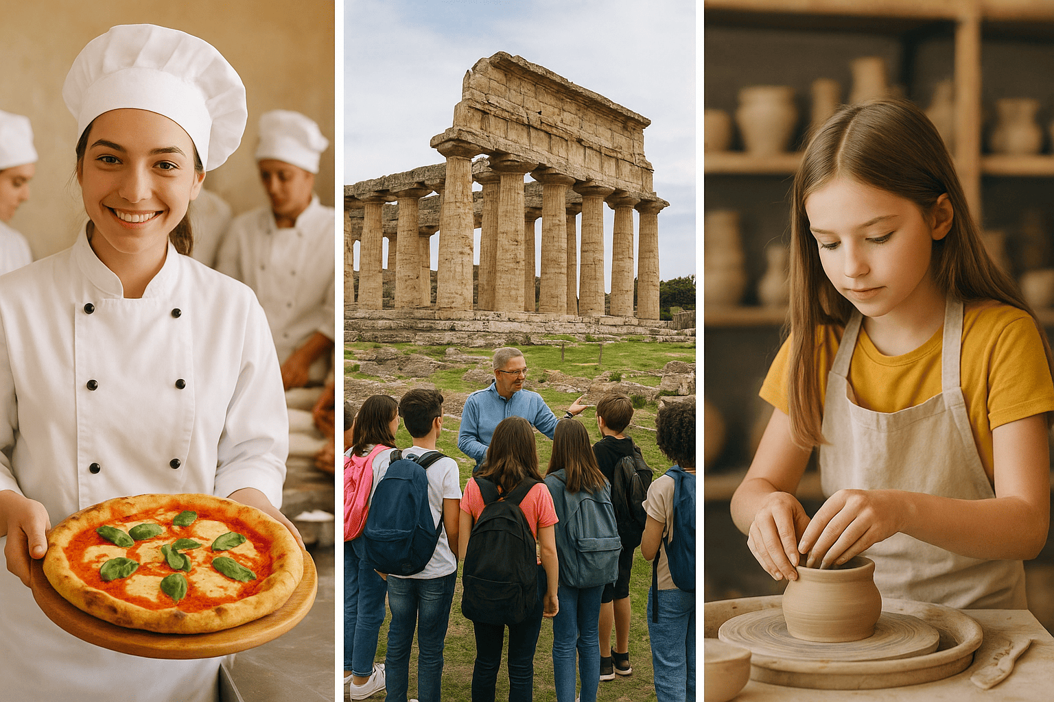 Gli studenti partecipano a un laboratorio pratico di circa 2 ore, guidati da uno chef professionista, per imparare a preparare la vera pizza napoletana. I ragazzi scoprono i segreti dell’impasto, la stesura e la cottura nel forno a legna. Alla fine, oltre a gustare la loro pizza, hanno la possibilità di sperimentare un antipasto tipico e bevande incluse. Questo laboratorio unisce manualità, creatività e divertimento, ed è perfetto per stimolare la curiosità degli studenti verso la cultura gastronomica partenopea.
