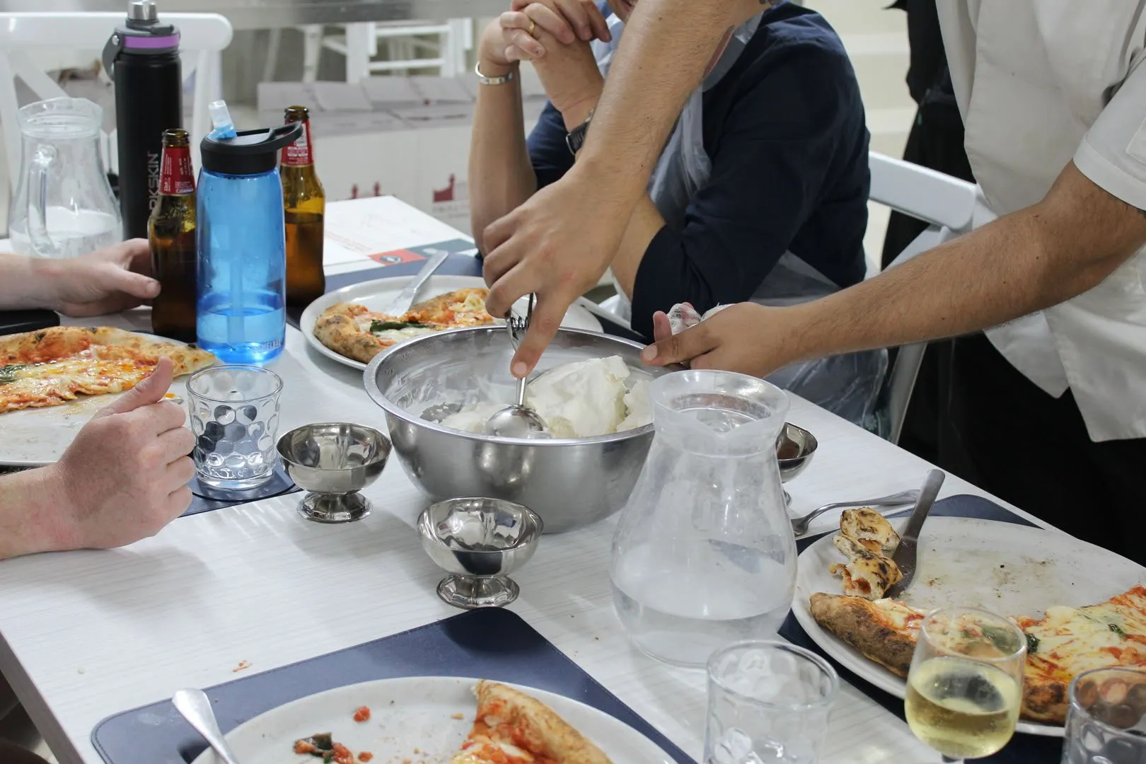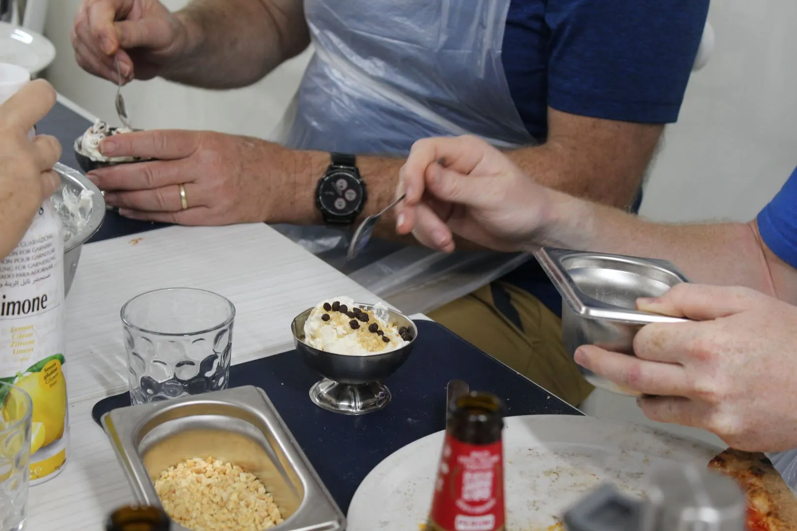 Le prix comprend la fabrication de pizzas et de glaces, le certificat de participation, la toque et le tablier du chef, les boissons non alcoolisées et alcoolisées (vin rouge/blanc, bière).