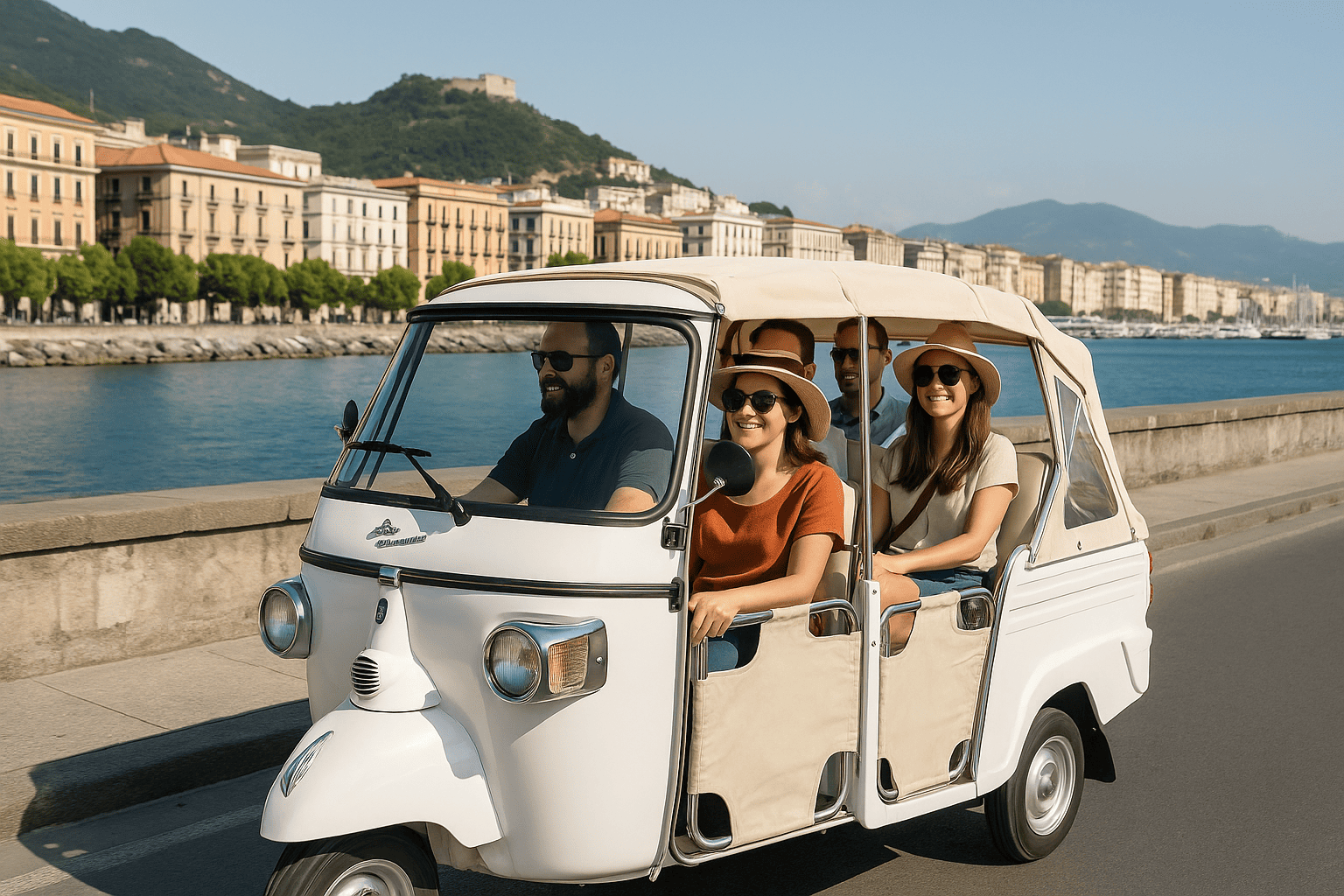 Partir avec un signe distinctif tuk tuk et laissez-vous transporter dans un voyage unique à travers la beauté de Salerne. La visite commence au centre historiqueun lieu où chaque ruelle raconte des siècles d'histoire et de traditions. Au milieu du parfum des boutiques et des vues pittoresques, vous pourrez admirer des bâtiments anciens, des églises et des places qui gardent l'âme authentique de la ville.