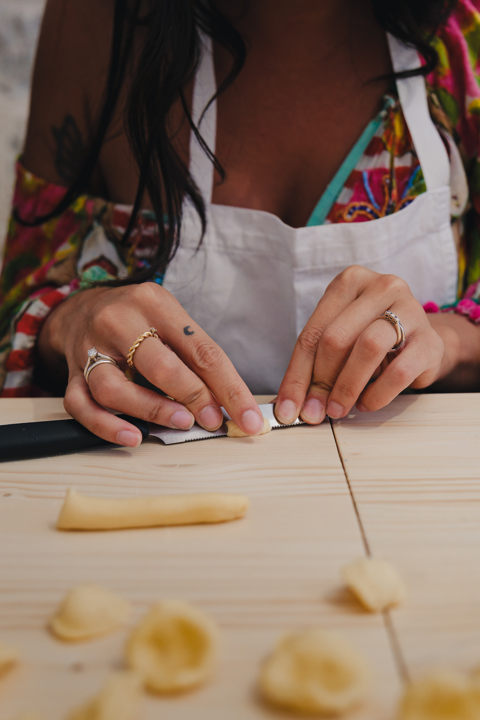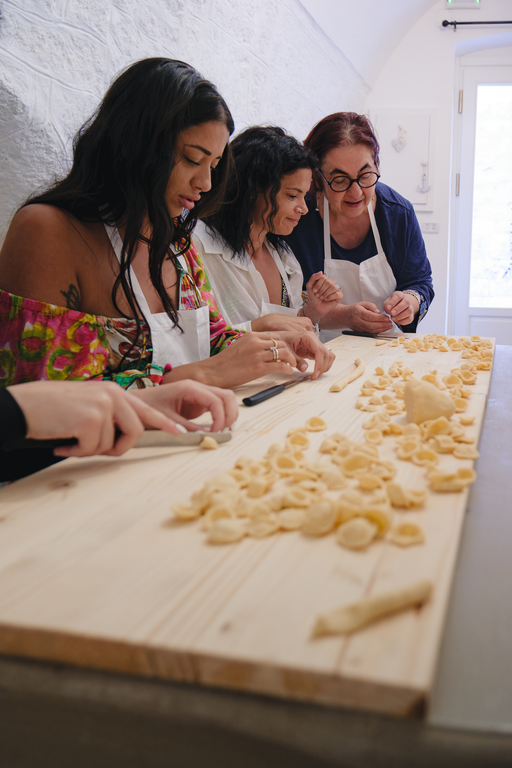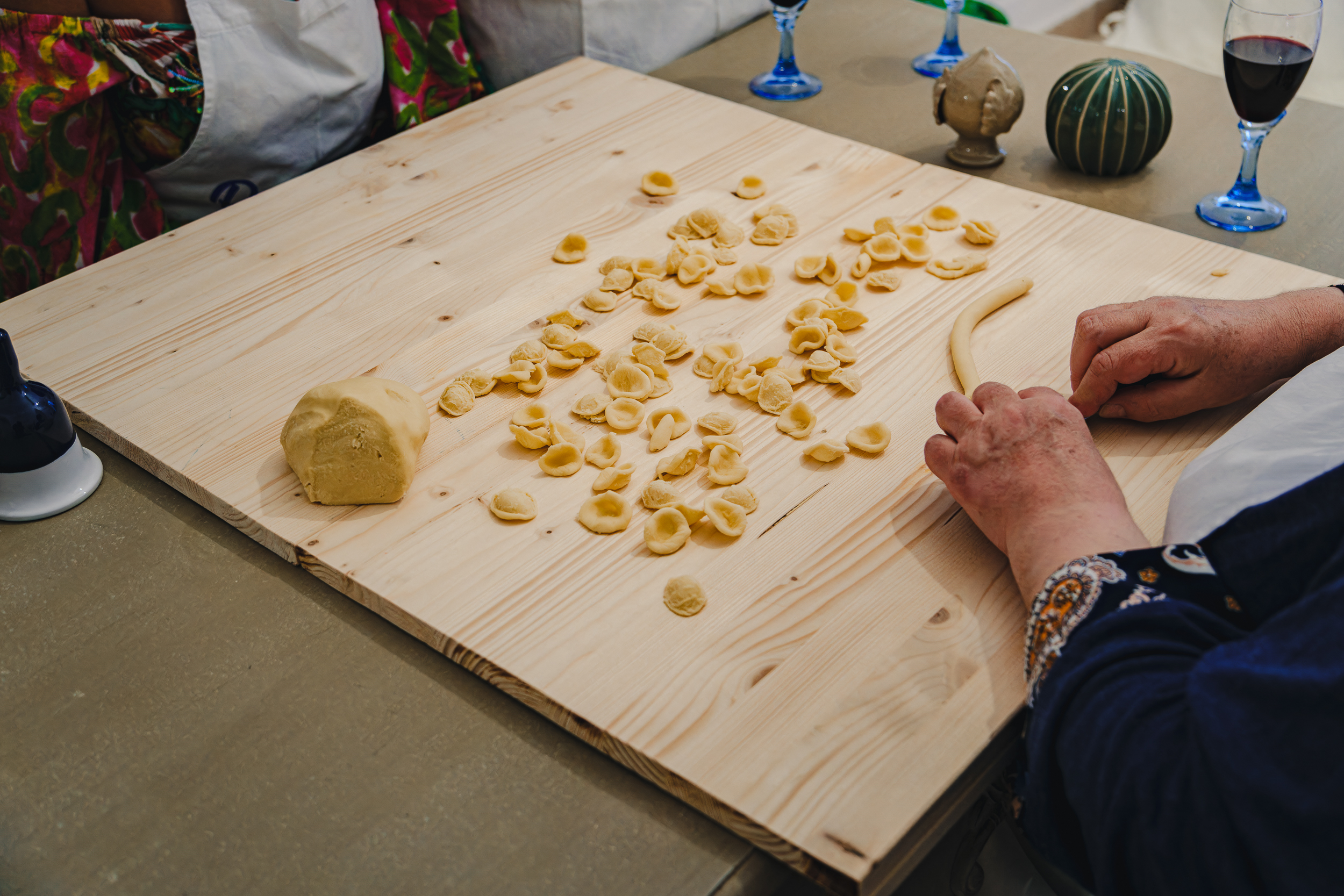Rejoignez-nous pour une cours de cuisine Plongez dans les ruelles pittoresques du centre historique de Polignano a Mare et découvrez l'art des pâtes faites à la main, l'une des plus grandes merveilles de la cuisine des Pouilles. Guidée par chefs locaux experts et passionnés, vous aurez l'occasion d'apprendre les techniques traditionnelles en utilisant des ingrédients frais, zéro kilomètreen respectant les recettes transmises de génération en génération.